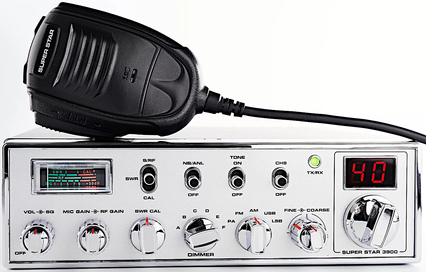 'Superstar 3900' (2023 versionen) er en flot og spændende CB radio. Med sit analog S-Meter har den et strejf af nostalgi. Den har 40 kanaler, og er udstyret med FM, AM, USB og LSB. Den har sidebånd! Den har en sendestyrke på 4 watt på FM og AM, og 12 watt på USB og LSB. Den kan købes hos Høeg Teknik og hos Limmared i Sverige.