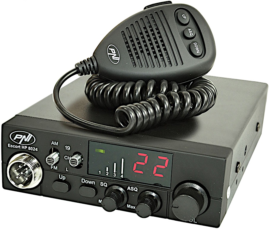 'PNI Escort HP 8024' er en god traditionel CB-mobilradio. Den er udstyret med 40 kanaler, den har AM og FM, og den har en sendestyrke på 4 watt. Radioen virker både til 12 Volt og 24 Volt. Den har en størrelse på 115 x 36 x 152 mm. Den kan købes hos Kinaradio.