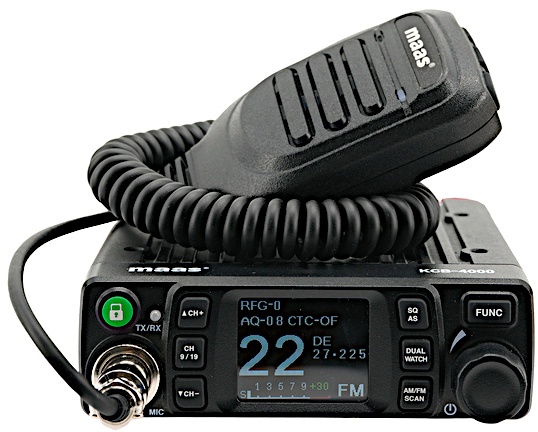 'Maas KCB-2000' består af 40 kanaler og kan sende 4 watt på henholdsvis FM og AM. Den må stamme fra omkring 2021. Den kan købes hos BM-radio.